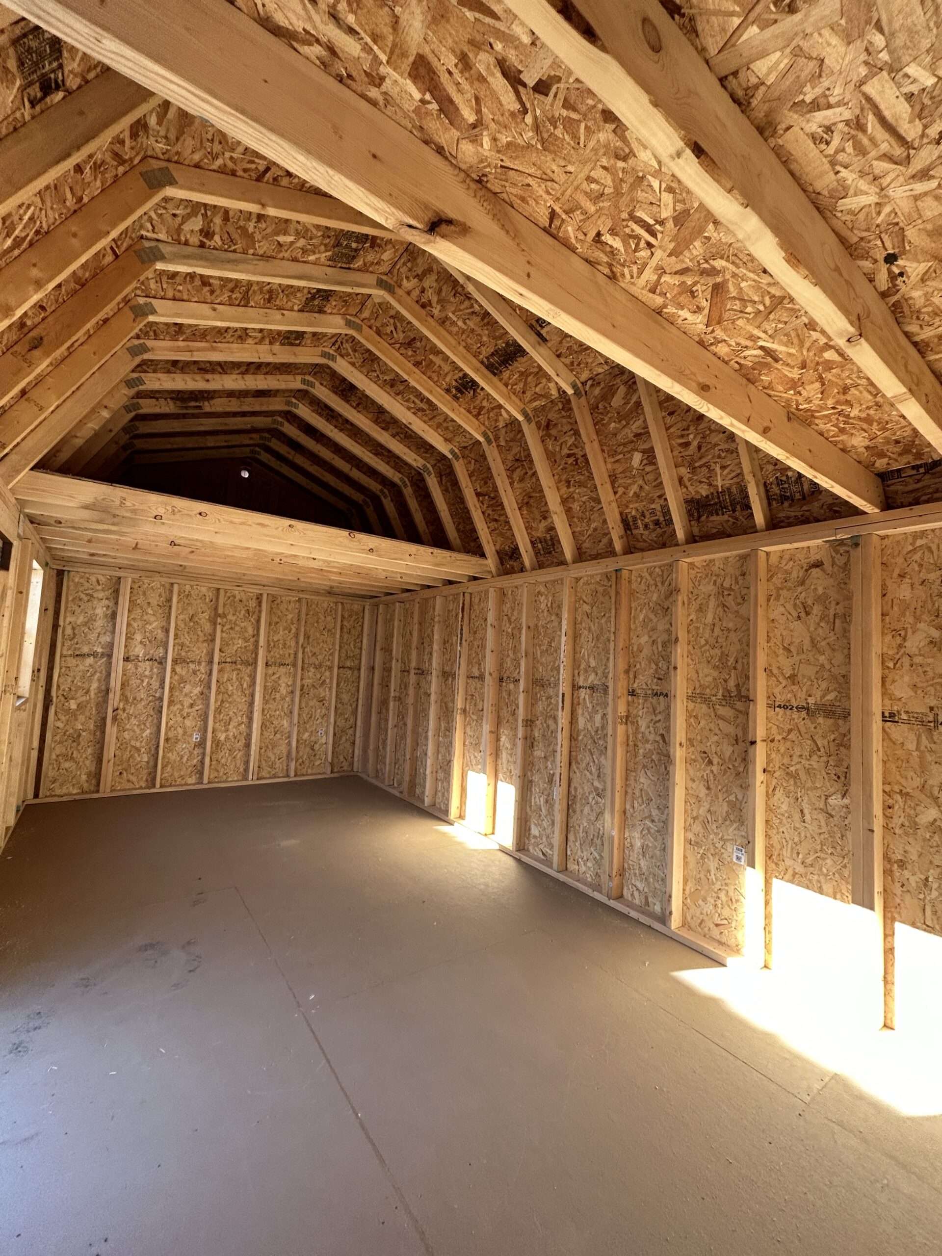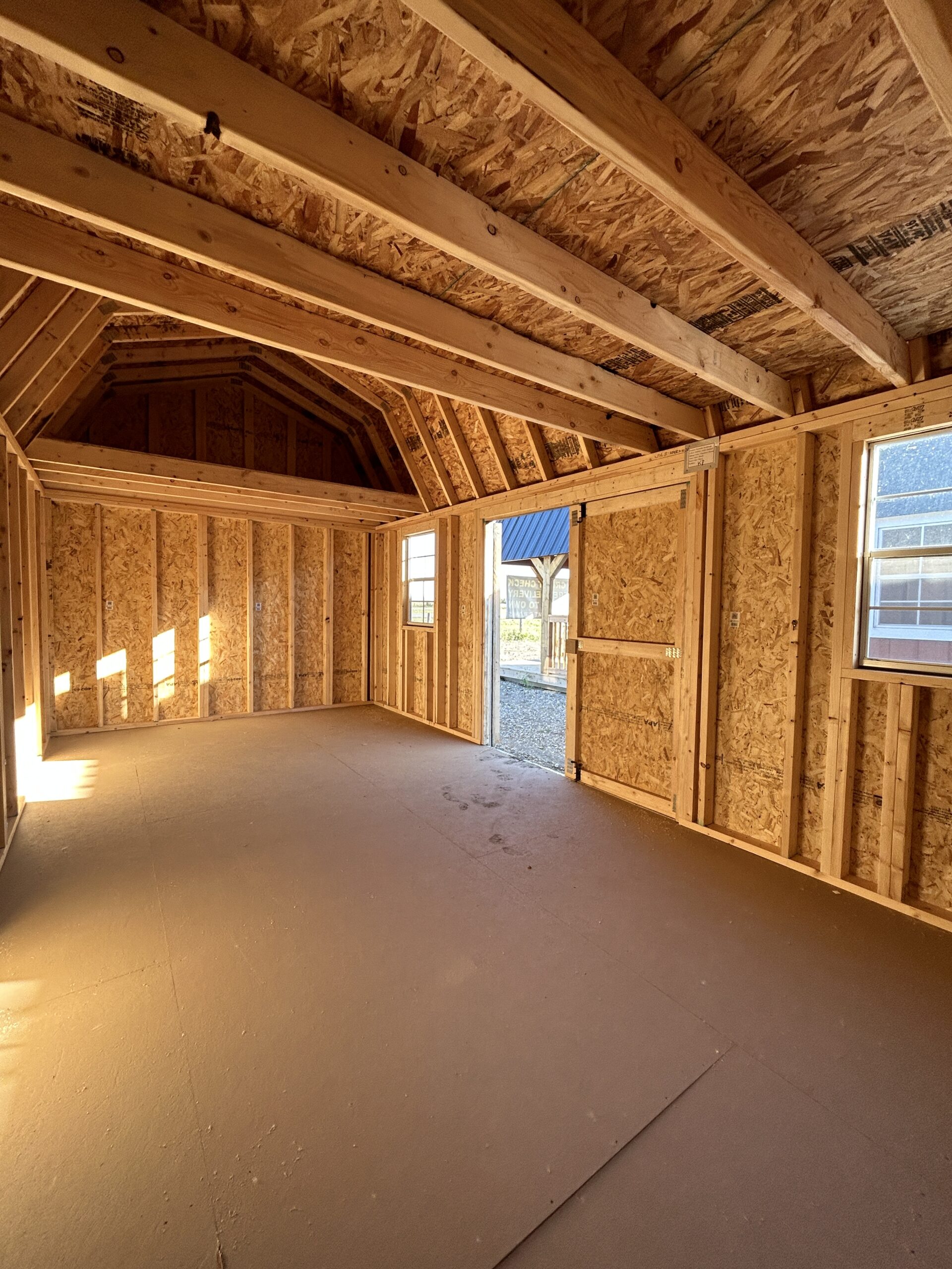 - Barn Style Roof with 6’6″ height under loft